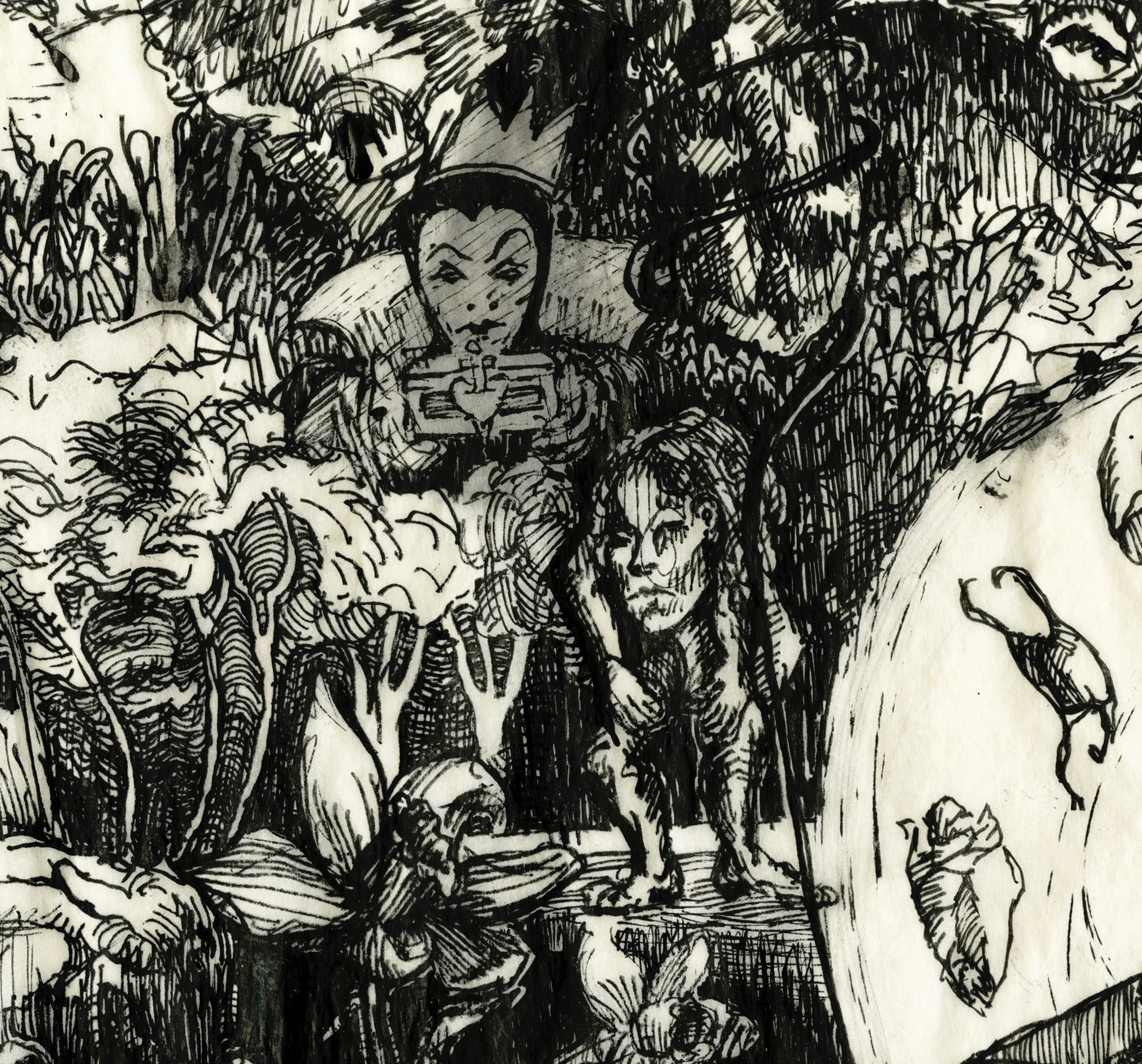 A three-year, 54" x 36" drawing with sumi ink on tracing paper, mapping the symbology of hysteria, bisexuality, Dora Maar, Ida Bauer, Cassandra, the Queen of Cups, Salome, sea monsters, madness, family history, and flight towards healing.