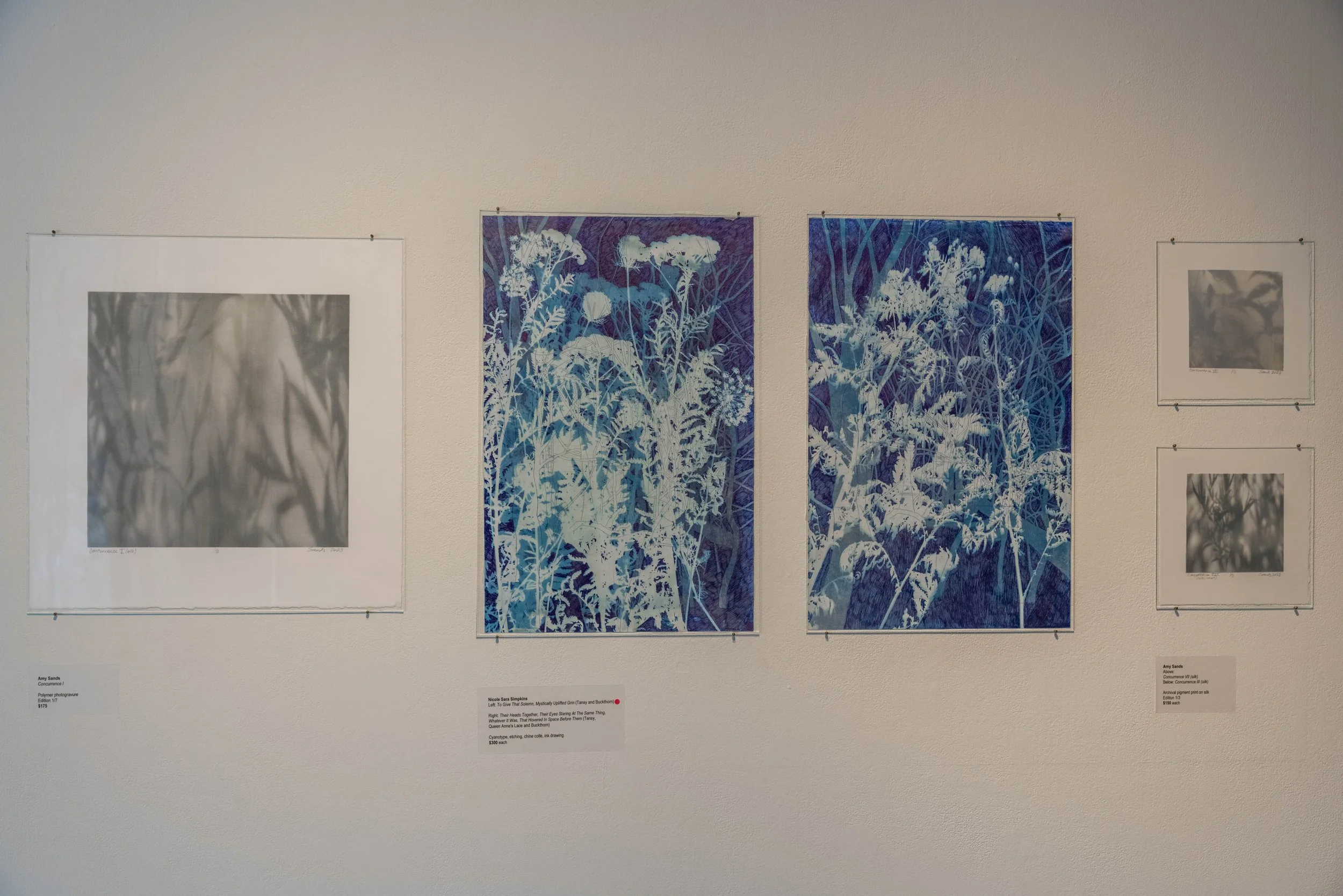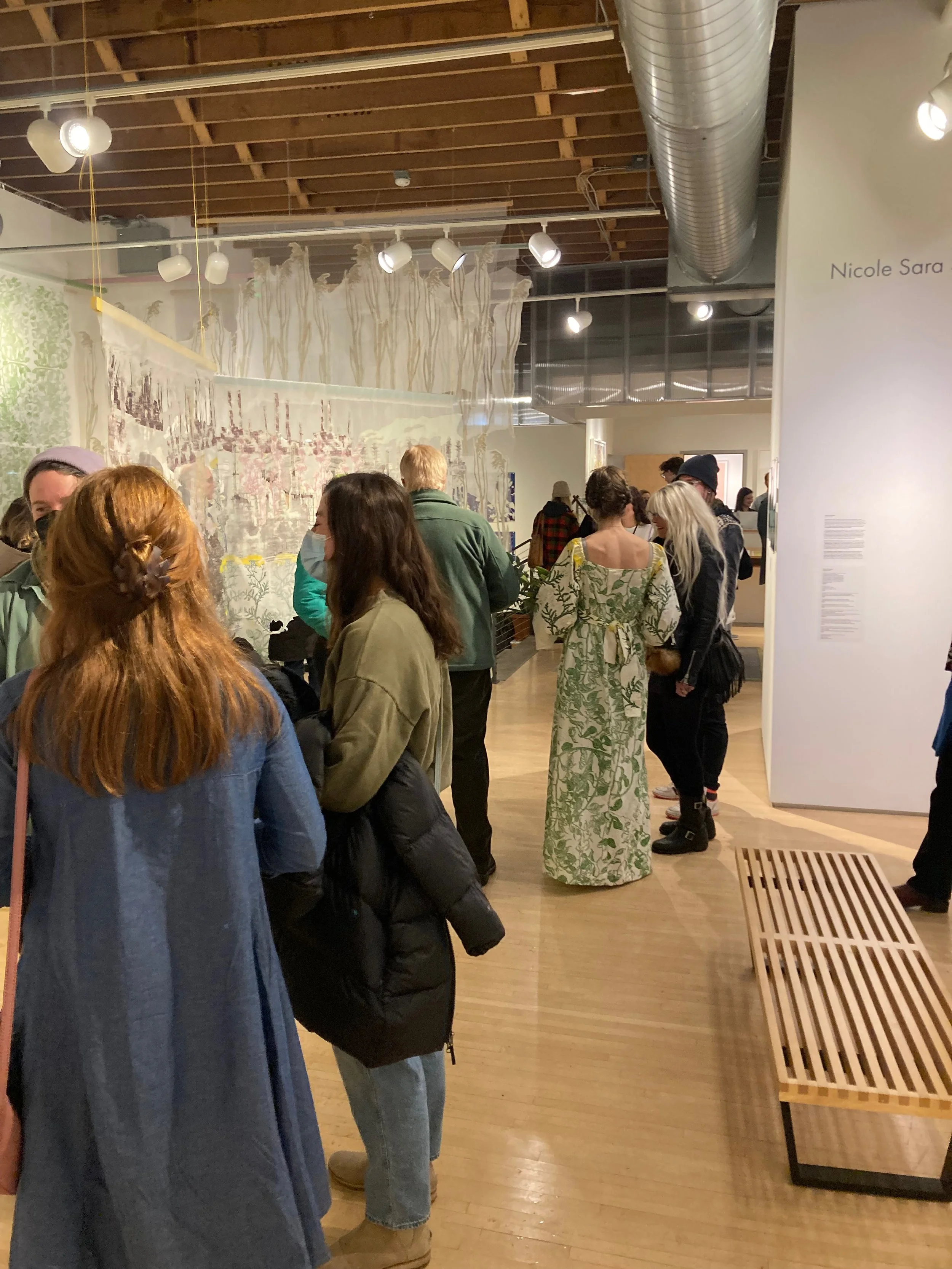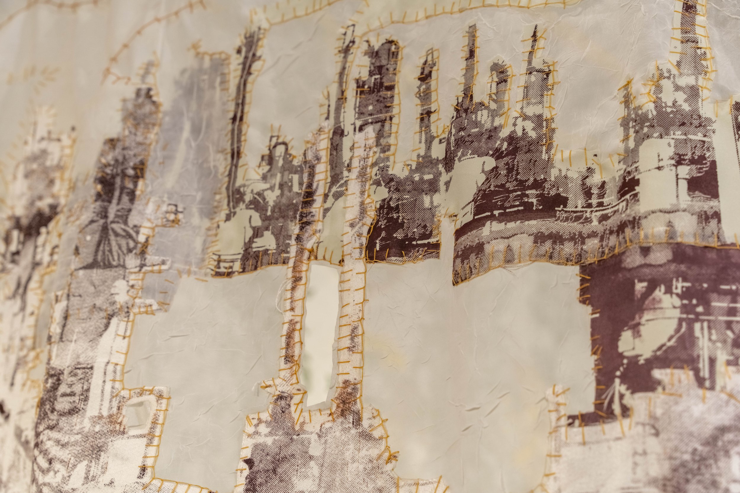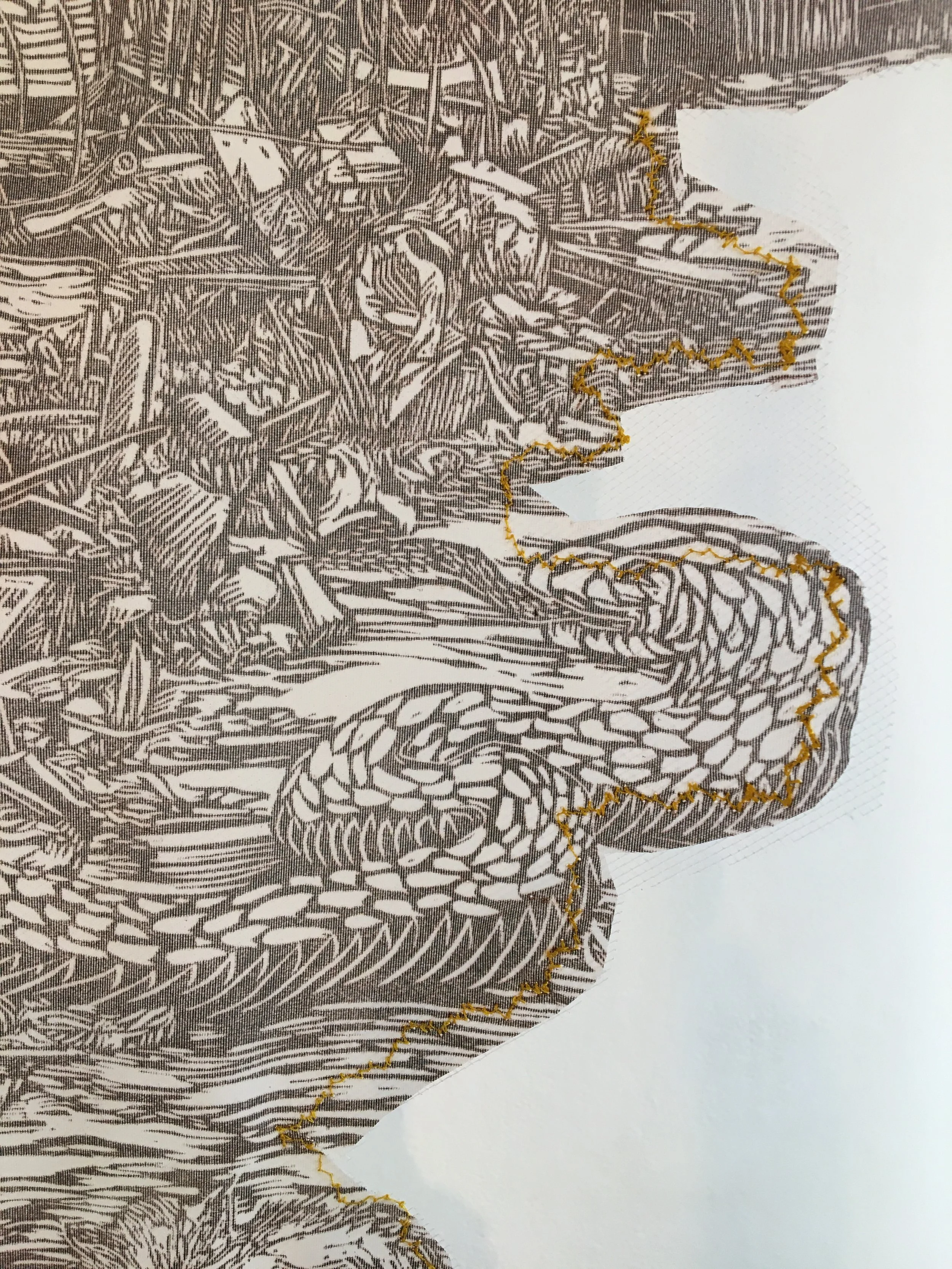 Installation work featuring suspended tapestries of linoleum prints, screen prints, cyanotypes, charcoal and ink drawing on found and salvaged textiles, doilies, plastic agricultural netting, hand and machine stitching. Accompanied by altar with reading corner, 2D prints of cyanotypes with etching, chine colle and ink drawing, and the work of co-fellow Amy Sands. Deepest thanks to the Mcknight Foundation and Highpoint Center for Printmaking for the support. Photos are a mix by Seth Dalseid, Jenny Barlow, and me.